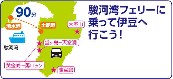 - 清水港発~土肥港着の航路の船内で、ここでしか聞けない二人の楽しい会話が流れます